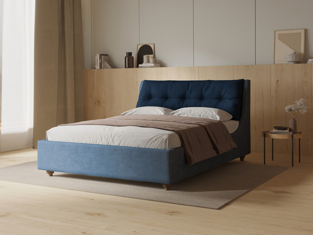 The bed features a deep buttoned, cushioned headboard, upholstered in soft velvet, offering ultimate relaxation and comfort – perfect for lounging or reading in bed. Upholstered in a premium blend of chenille and velvet fabrics, the frame combines a contemporary chenille base with a plush velvet headboard cushion for a fresh, modern look. Available in stylish grey and blue combinations, this bed will pair perfectly with a wide range of interior styles and bedroom design concepts.