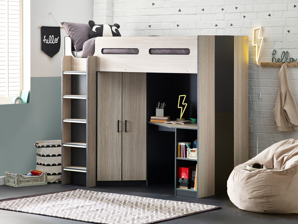 With its inspiration being deeply rooted in the design styles of Scandinavia, the Lucille Highsleeper Bed is finished in a Woodgrain and Anthracite colour scheme, adding some “Hygge” vibes to your home. It’s not just about looks however, this bed has a myriad of features, making your child’s bedroom just as practical as it is relaxing.