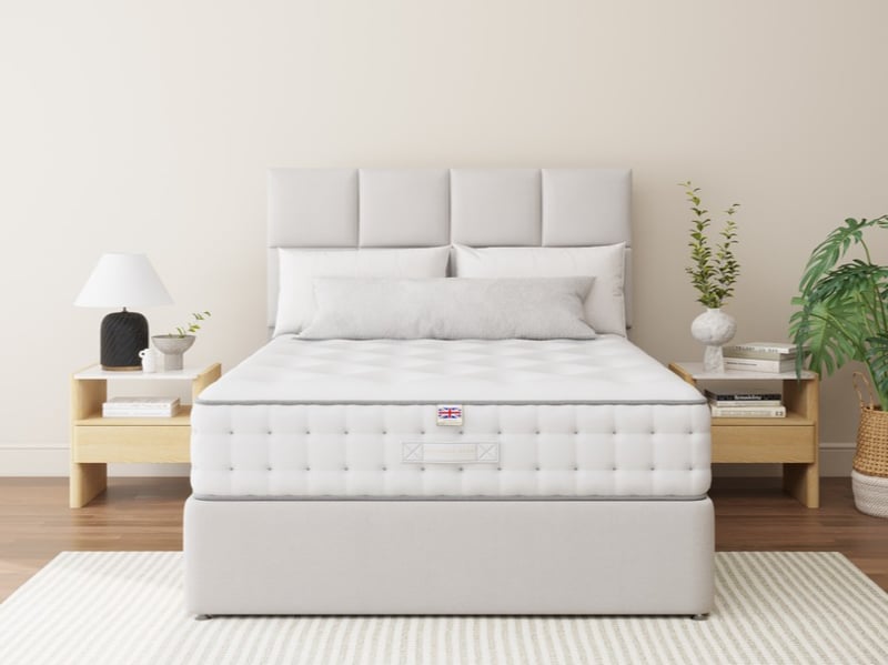 The Luxury 1000 features natural fillings carefully selected for their comfort and temperature-regulating properties. Hampshire wool, firmly traceable to the farm, acts as a regulator, keeping you warm and snug in the winter and cool in the summer. This means that the temperature won’t influence your sleep, no matter the season. Wool is also an incredibly comfortable natural filling, adding a plush, cushioning layer to the mattress. The mattress also contains temperature-regulating fine English cotton, silk, and cashgora. This combination perfectly balances softness, breathability, and natural warmth control for an exceptional sleep experience.