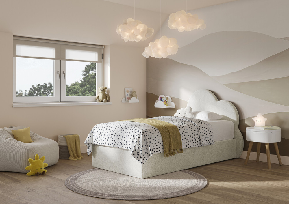 A boucle dreamland oasis where your little one can drift off to snoozeville in the softest, squishiest comfort. With a design that’s as vibrant and playful as your child’s imagination, the cloud-shaped headboard adds a sprinkle of playfulness to any bedroom décor, making it a magical haven.