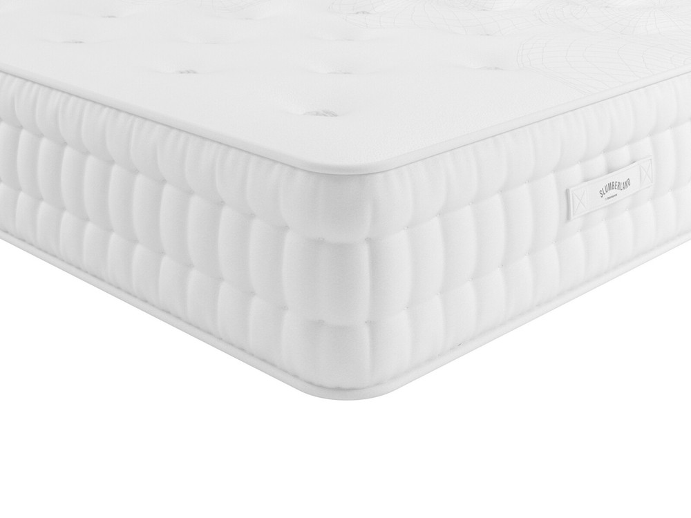 1850 dual-layer pocket springs cradle you, with 800 mini and 1050 full-height pocket springs, supporting your unique body shape, adapting to movement, and ensuring support throughout the night. Thanks to the seriously soft Tencel™ super soft-touch stretch knit cover, your skin is cared for, and the natural antibacterial allergy protection offered, promotes a healthier night’s sleep. The quilted, sleep surface also features Truecomfort fillings, composed of 75% recycled PET plastic, offering breathable, cushioning comfort while minimising environmental impact.